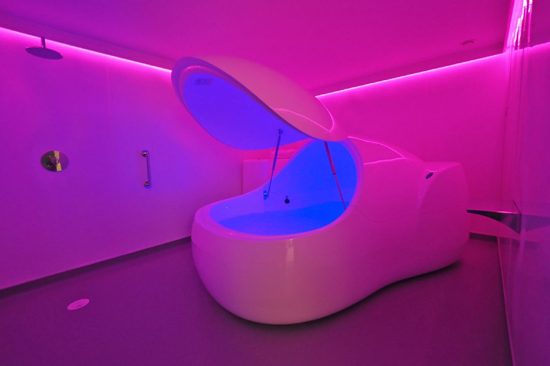 Floatation is a relaxation therapy. You float on the surface of warm water saturated with Epsom salt (550kg of it!). Due to the buoyancy, there is no pressure on your body, so all your muscles can relax and let go of tension. Your mind can drift off into peace and quiet.