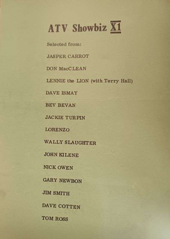 “The Showbiz XI included Jasper Carrott, Bev Bevan of ELO and TV presenters Nick Owen and Gary Newbon.