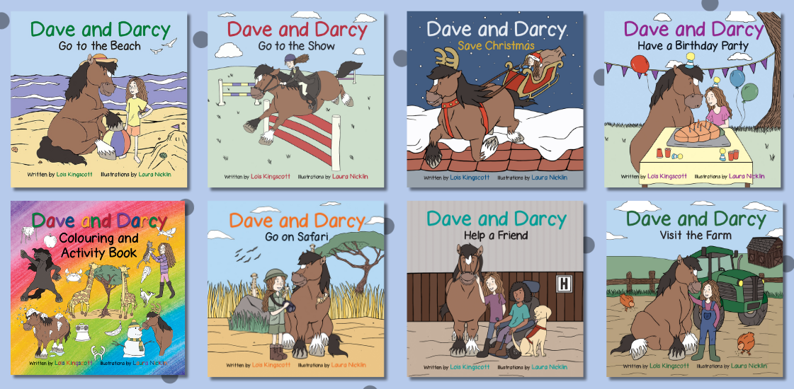 The Dave and Darcy children's book series was created by local Cheltenham author Lois Kingscott. The books are based on her goofy, loveable horse, Dave, who she loans to Cotswold Riding for the Disabled.