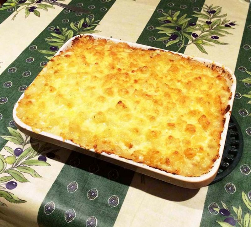 5. Add the double cream to the remaining sauce, stir in the cooked potato cubes, season and pour the mixture over the chicken and vegetables in the dish. Sprinkle with the cheese. Bake for 35-40 minutes or until lightly golden on top and bubbling. Serve with wilted spinach.Copyright © 2025 The Local Answer Limited.