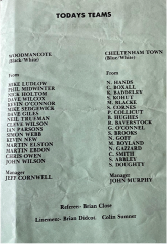 Elston also remembers playing in a charity match against Cheltenham Town while at Woodmancote in support of Bradford City after the stadium fire in 1985."The game was at Bishop's Cleeve's old ground in Stoke Road," he said. "We scored the first goal but lost 7-2. They had some good players – Ray Baverstock, Mark Boyland, Steve Brooks."